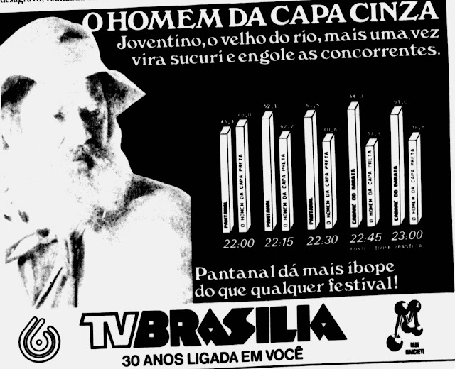 Hoje termina a novela Pantanal. O remake escrito por Bruno Luperi do clássico de 1990 exibido na versão original pela extinta Rede Manchete encerra hoje na Rede Globo sua exibição e em meio à tudo isso o blog TV em Brasília republica os anúncios da versão original da trama de Benedito Ruy Barbosa exibida pela Manchete e aqui no DF pela TV Brasília.